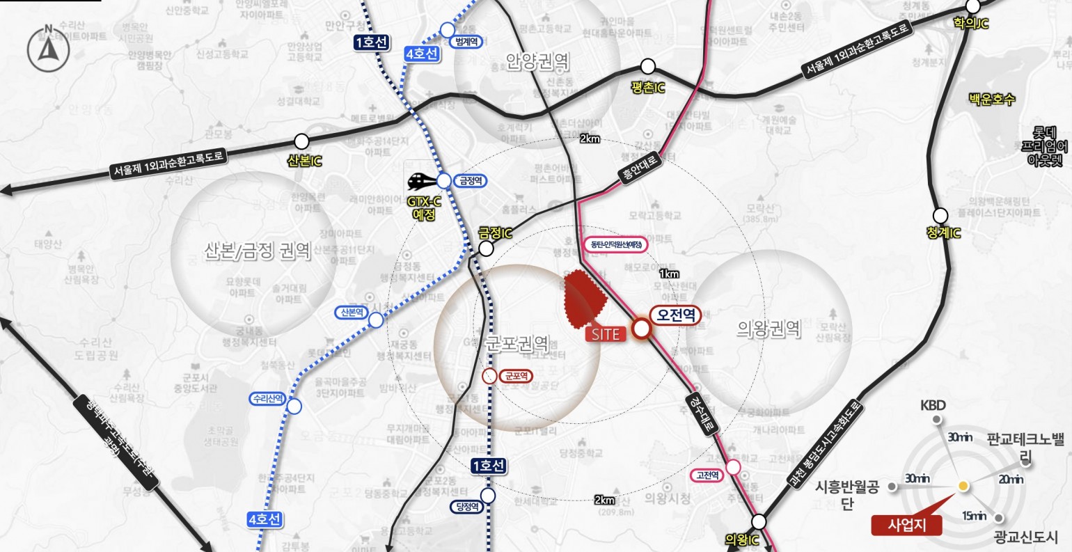 인동선 오전역 개통예정 / 1호선 군포역 / GTX-C 4호선 금정역